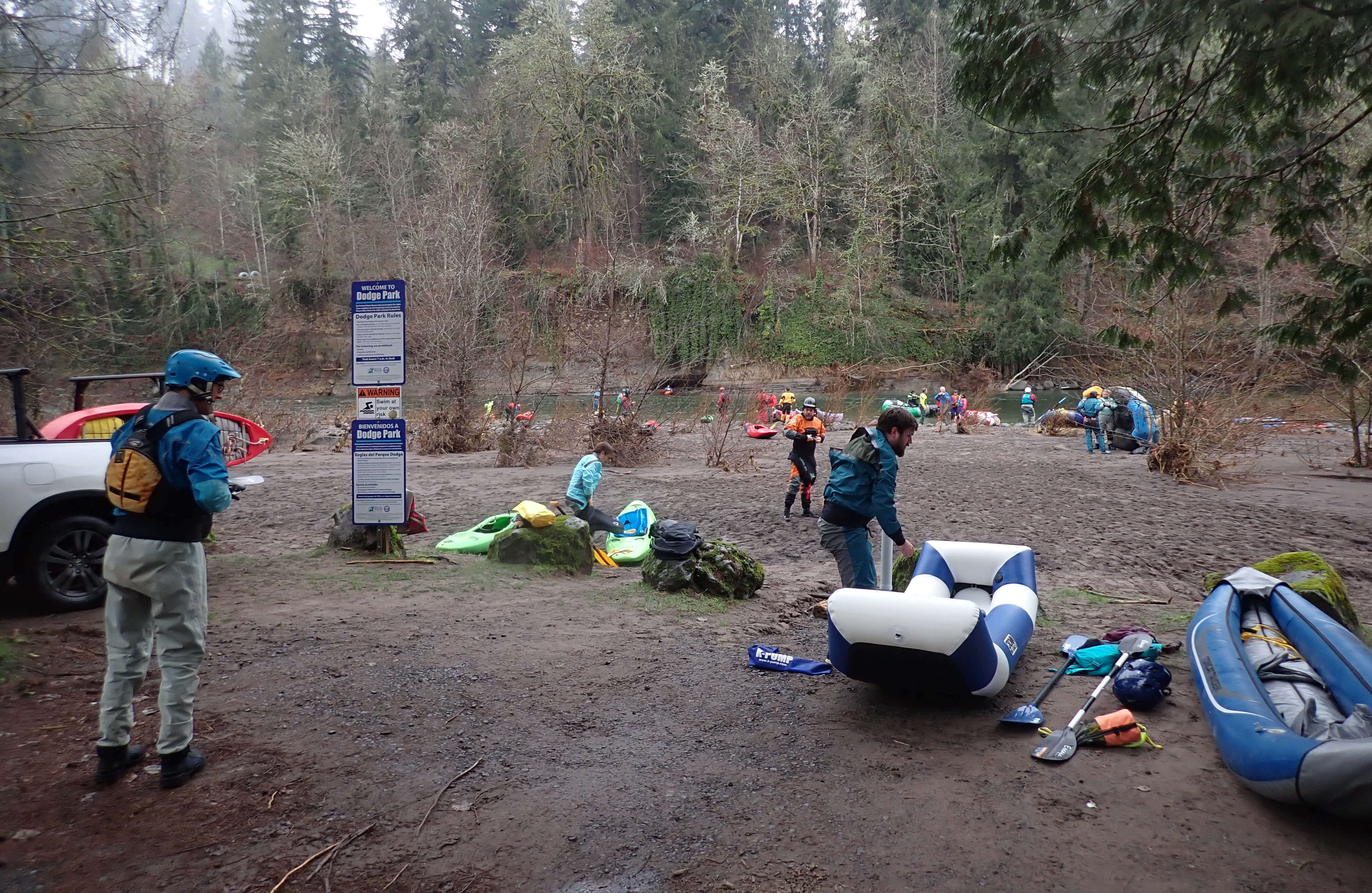At the takeout, everyone organized quickly to retrieve vehicles and get boats
